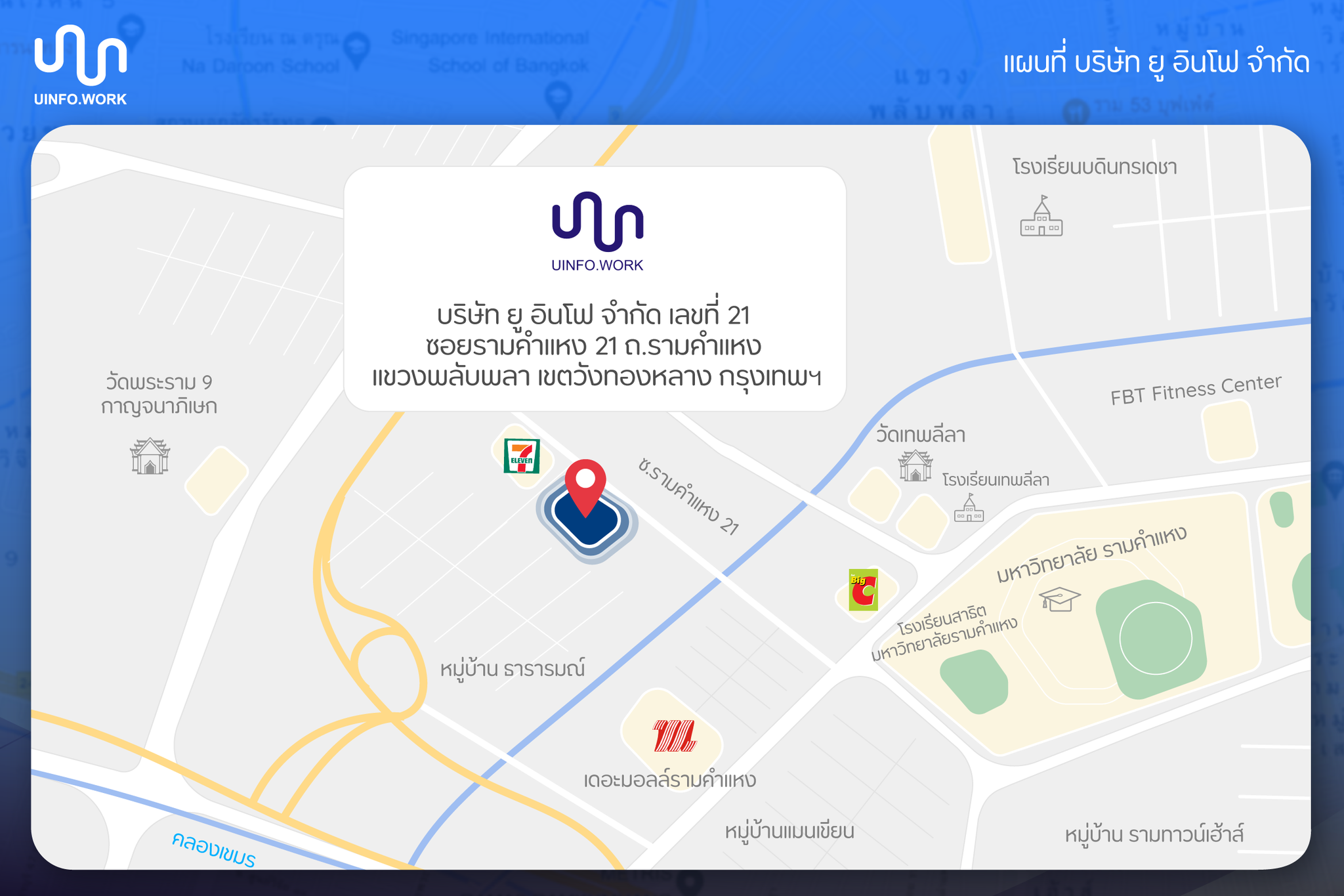 21 ซอยรามคำแหง 21(ใกล้เซเว่นกลางซอย) ถนนรามคำแหง แขวงพลับพลา เขตวังทองหลาง กรุงเทพมหานคร 10310