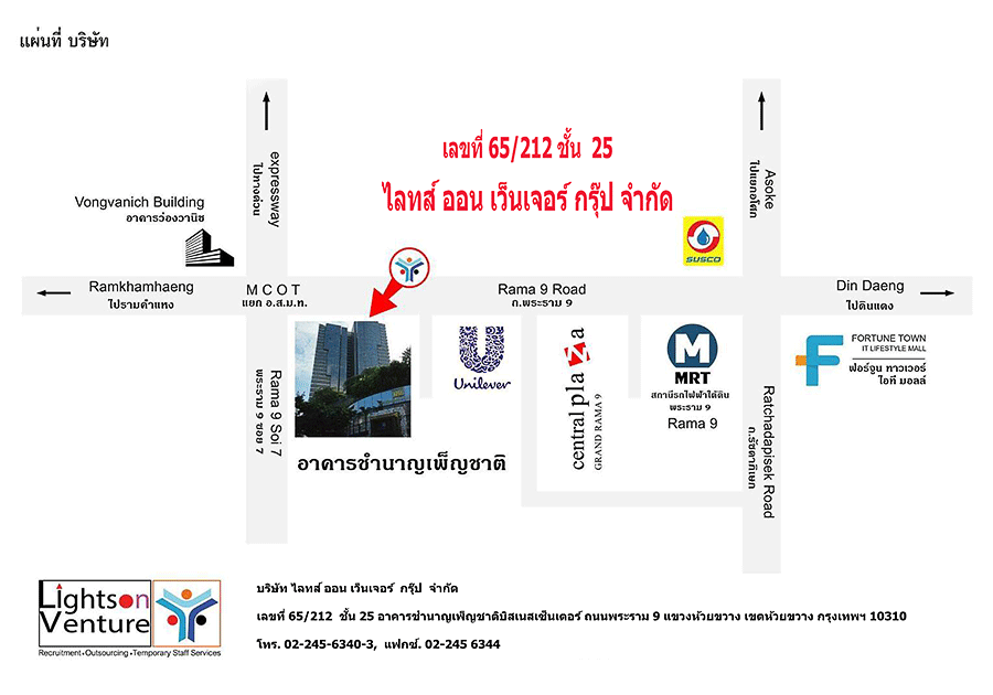 บริษัท ไลทส์ ออน เว็นเจอร์ ซึ่งเป็นบริษัทที่ดำเนินกิจการทางด้านการบริการสรรหาเจ้าหน้าที่ในทุกๆตำแหน่ง ในรูปแบบ Outsource Recruitment และ Temporary Staff Services พนักงานในตำแหน่งต่างๆ
