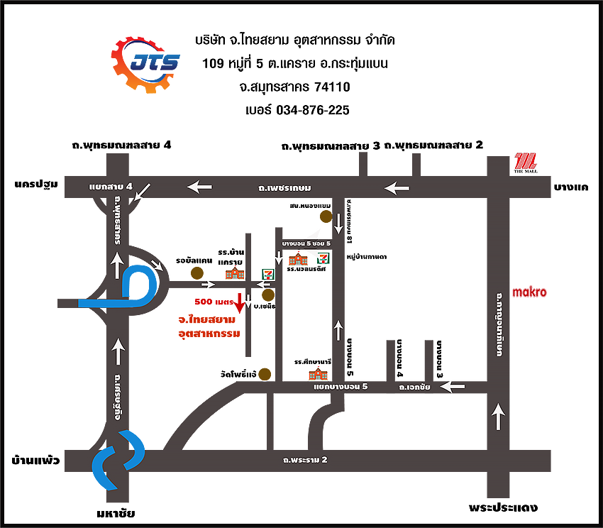 บริษัท จ.ไทยสยามอุตสาหกรรม จำกัด ดำเนินธุรกิจผลิตอุปกรณ์ต่อพ่วงรถไถนา เช่น โครงผานสอง และ ใบผาน ไถหัวหมู ล้อยางเกษตร เครื่องมือการทำการเกษตรแบบครบวงจร ตราปืนใหญ่คู่