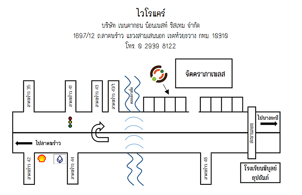การเดินทางมา บริษัทไวโรแคร์ แมเนจเมนท์ จำกัด (Virocare) ตั้งอยู่ริมถนนลาดพร้าวระหว่างซอย 43/1 กับซอย 43/2 ก่อนถึงตลาดสะพาน-2 (บริษัทอยู่ตรงข้ามลาดพร้าว ซอย 48)
