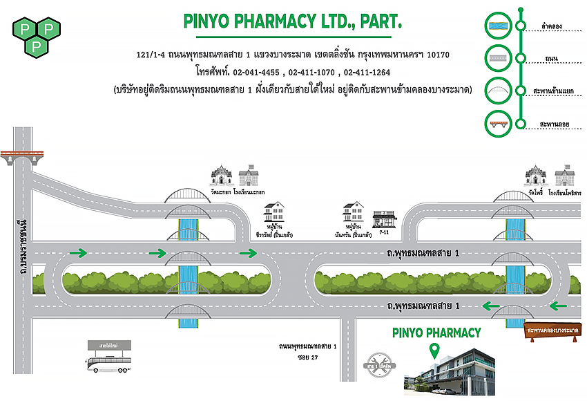 หจก.ภิญโญ ฟาร์มาซี ถ.พุทธมณฑลสาย 1 แขวงบางระมาด เขตตลิ่งชัน กรุงเทพฯ 10170